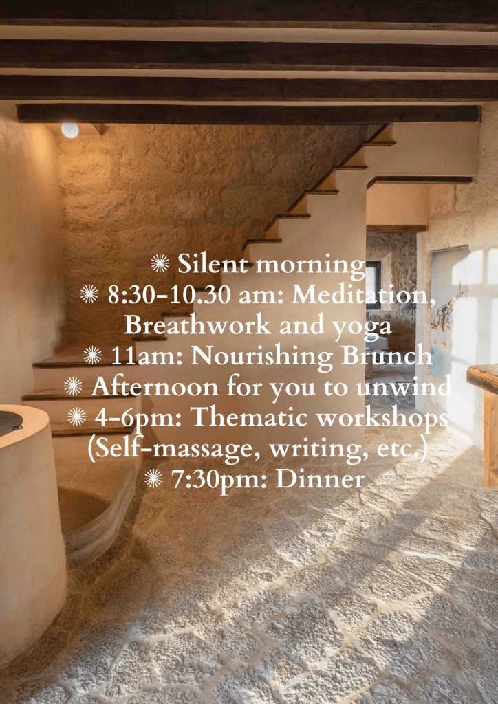 Taking time out of daily routines to tune into nature’s rhythms allowing for plenty of time for contemplation, candlelight dinners, farniente, re-connection with oneself, and deep relaxation and renewal. Guided by healing practices in a unique & nurturing setting, we invite rest into our lives, unclench our jaws and relax our shoulders. We come back to the where we are – here, resetting our nervous system, so that it works for us – and not against us.